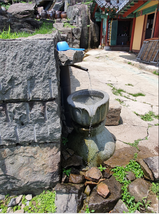 규봉암 약수. 오염때문에 약수터가 많이 사라졌는데 이곳은 남아있어서 크게 도움받았다. 감사를 표하고 물을 보충.