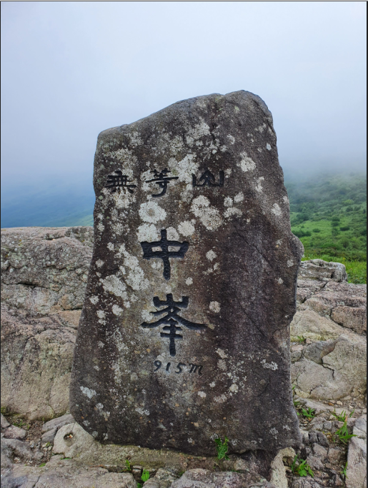 무등산 중봉 표지석. 915m
